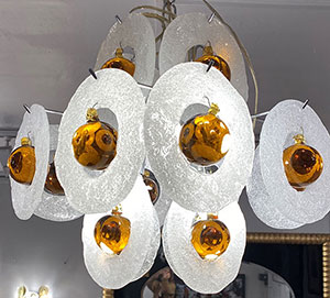 avec de nombreux objets d'époque : vases, chaises, tables, tableaux, luminaires...